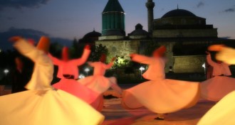 Dervishes are Sufi Muslims who represent the revolving heavens with their spinning dance.