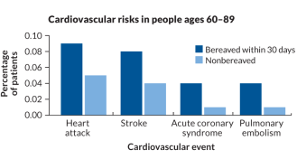 A person’s risk of heart attack or stroke is doubled in the month following the death of a spouse or partner.
