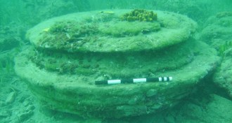 Submerged stoneworklike formations near the Greek island of Zakynthos were built by methane-munching microbes, not ancient Greeks.