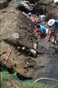 GET CRACKING. Excavators probe the muddy soil at Gesher Benot Ya’aqov, where Stone Age inhabitants left evidence of hard-core nut cracking.