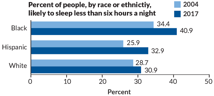 POOR SLUMBER Light-emitting devices and high stress levels could be contributing to sleep deficits among Americans, especially minorities.