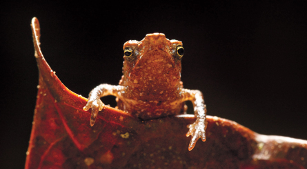 Finally some good news on the frog and toad front: Scientists on an amphibian expedition in Colombia’s cloud and rain forests discovered three new species, including a tiny beaked toad. The diminutive toad, a mere 2 centimeters or smaller in length, is a member of the genus Rhinella, making it a close relative of the giant cane toad (which can grow to a whopping 28 cm). The dull coloration of the newly identified beaked toad probably camouflages it on the forest floor, where it also lays its eggs. Oddly, the beaked toad seems to skip the tadpole stage, hatching directly into toadlets, report scientists from Conservation International, the IUCN Amphibian Specialist Group, Global Wildlife Conservation, and Fundación ProAves.