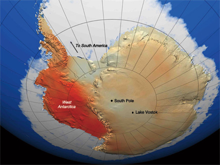 UNEXPECTEDLY RED Since the 1950s, some portions of Antarctica have cooled (as denoted in faint blue tones), but many areas, including West Antarctica, have warmed substantially (red tones).