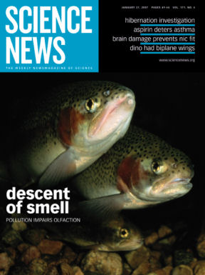 In these circumstances, a pollutant-induced shutdown of fishes’ sense of smell may last only a few hours. However, in some regions, pulses of polluted storm water “may come through so frequently that fish never effectively recover,” Scholz says. Increasing runoff in areas of growing urban and rural development may explain why salmon are disappearing from streams throughout the West, he proposes.