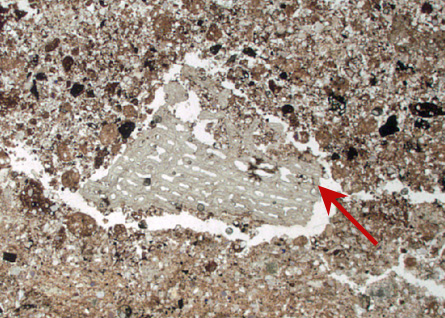 BURNED BIT A tiny piece of charred bone (arrow), evidence of an ancient controlled fire, comes from Wonderwerk Cave in South Africa, a site inhabited by human ancestors about 1 million years ago.