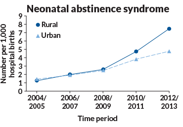 In 2004, NAS rates were consistently low across the country: For every 1,000 babies born, roughly one was diagnosed with NAS. By 2013, when pediatrician Nicole Villapiano and colleagues examined rural versus urban data, rates were up across the board. But rural areas had been hit the hardest, with nearly 8 per 1,000 babies diagnosed with NAS, the researchers reported in February in JAMA Pediatrics.