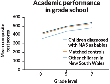 Whether that’s caused by NAS is hard to say, says Oei, a coauthor of the study. Poverty, poor childhood nutrition and prenatal exposure to alcohol or other drugs could also come into play. But the results are a red flag for all those newly diagnosed babies. “You expect your baby to go to school and get good grades,” Oei says. But from as early as third grade, “these kids don’t seem to be able to do that.”