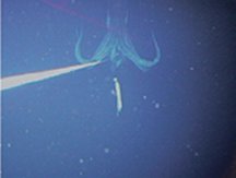 On the morning of Sept. 30, 2004, the system triumphed, report Tsunemi Kubodera of the National Science Museum and Kyoichi Mori of the Ogasawara Whale Watching Association, both based in Tokyo. One of their cameras recorded the pale form of a giant squid as it attacked the bait 900 meters down.
