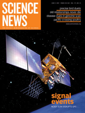 Although the storm caused no casualties, “the effect on GPS receivers was more profound and widespread than expected,” says Paul Kintner, an electrical engineer and computer specialist at Cornell University. The storm was especially surprising because it happened when the sun, near the minimum of its 11-year activity cycle, was relatively calm.