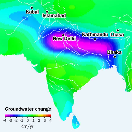 DRINK UP Dramatic increases in the irrigation of crops across northern India have substantially depleted the region’s groundwater.