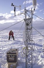 COOL GEAR. Instruments installed atop iceberg B15A enable scientists to track its movements. J. Landis/NSF