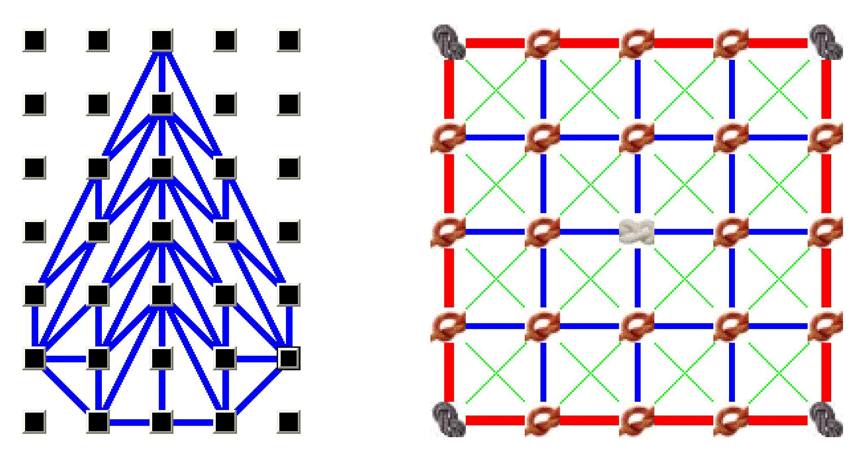 CULTURE CLUB While part of a team, computer-game players saw examples of how to draw an arrowhead, left, and a fishing net, right, before trying to copy or improve on the originals. Larger groups in this game developed more effective designs, suggesting that big populations drive cultural evolution.