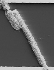 The Nebraska team got into its microbial line of work by accident. While studying electron flow through assemblies of gold nanoparticles on silicon, Berry and Saraf discovered an unexpected colony of B. cereus. By using lysine to control electric charge in their experiments, the researchers had unwittingly set out a picnic for the bugs.