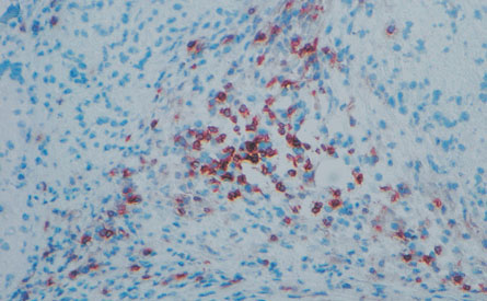 EARLY REJECTION T cells (brown) creep into tissues generated by reprogrammed stem cells (blue).