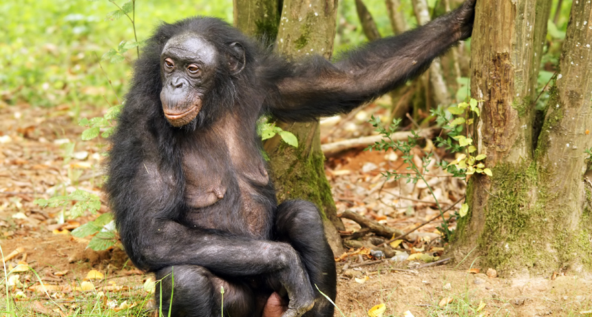 IN SYNC A bonobo, Pan paniscus, belongs to a species than can beat to a human drum.