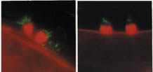 The signaling molecule tells O157:H7 to activate its arsenal. About 10 percent of its genes kick on in response, Sperandio reports in an upcoming Journal of Bacteriology. Besides triggering attachment and effacement, these genes churn out a host of proteins that perforate, wound, and otherwise disable the intestine. Some of these proteins, speculate the Maryland researchers, may cause the infamous diarrhea.