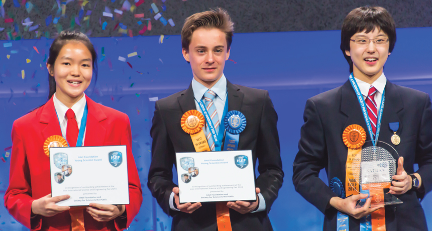 Intel ISEF 2014 top winners (left to right) Shannon Lee, Lennart Kleinwort and Nathan Han.