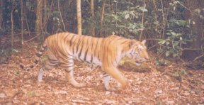 Biologists from the World Wildlife Fund (WWF) and the Bronx Zoo-based Wildlife Conservation Society trained local Cambodians to set up automatic cameras along suspected tiger trails. They mounted the cameras on trees at a height chosen to pick up these big cats. Triggered as animals cross an infrared beam, the cameras have snapped almost 2,000 images, including birds not previously identified in Cambodia and more than 60 types of large mammals.