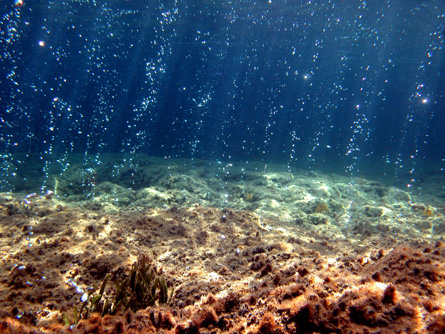 Carbon dioxide bubbling up from seafloor seeps lowers the pH and species diversity in surrounding areas.