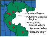 Scientists can pin a sample’s origin to one of these five Andes cocaine-growing regions. Ehleringer