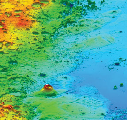 DEEP VIEW. Mars’ Medusae Fossae formation (much of the green terrain in this color-coded image) may hold more than 1 million cubic kilometers of ice-rich sediment.