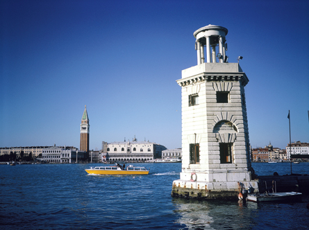 TESTING THE WAVES A radio broadcast 442 meters from a lighthouse on the island of San Giorgio Maggiore (right) to the Doge’s Palace in Venice (left) demonstrated a new way to twist these electromagnetic waves that could be useful for wireless networks and cell phone communications.