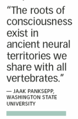 “The roots of consciousness exist in ancient neural territories we share with all vertebrates,” says neuroscientist Jaak Panksepp of Washington State University in Pullman. “By the weight of empirical evidence, all mammals are sentient beings.”