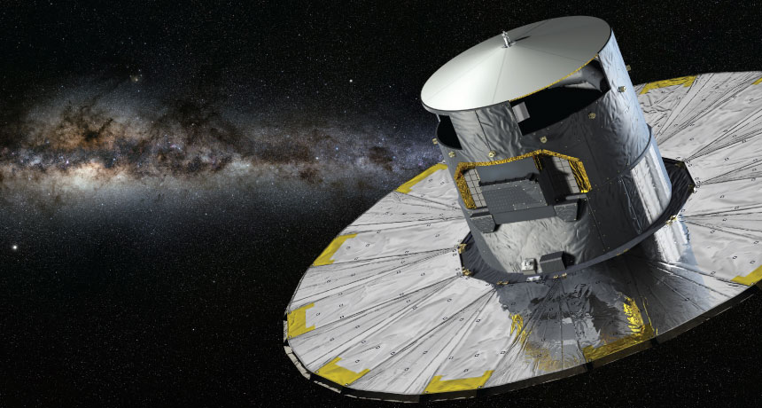 STAR TRACK The Gaia spacecraft (illustrated above) is collecting data on position and motion for about 1 billion stars in the galaxy. The data may help resolve controversy over the pace of the universe’s expansion.