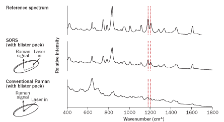 Since developing this technique, called Spatially Offset Raman Spectroscopy or SORS, in 2005, Matousek’s team has tested it with both tablets and capsules in several types of packaging. While a bottle or blister pack distorted a regular Raman signal, SORS revealed active ingredients in four different meds through their containers, including Sudafed capsules and Nurofen caplets (a brand of ibuprofen), Matousek and Rutherford colleague Charlotte Eliasson reported in Analytical Chemistry in 2007.
