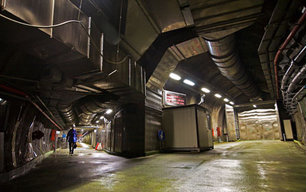 The two tunnels at the entrance of the underground Gran Sasso Laboratory in Italy, where the XENON100, CRESST and DAMA experiments are housed. Credit: INFN/S. Schiavon