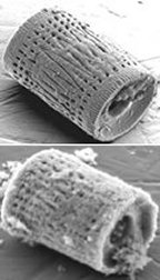 The particular structure in that experiment was derived from a diatom called Aulacoseira. Its shell resembles a tubular capsule scored with v-shape grooves and rows of tiny pores, measuring about 200 nm each in diameter and spaced several hundred nanometers apart. After the conversion was complete, the researchers found that the shell’s features stayed within 30 nanometers of their original size and location.