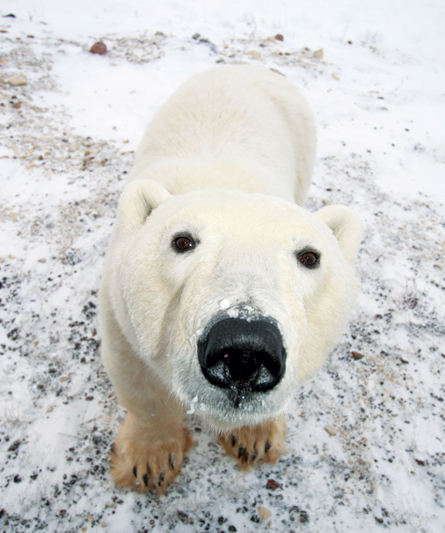 — Polar bear fur can even cover the foot pads in winter. Fur engulfs just about everything except the tip of a polar bear’s nose.