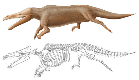 Now, Philip Gingerich, a paleontologist at the University of Michigan in Ann Arbor, and his colleagues add a new twig to the cetacean family tree, a 2.6-meter-long, mostly aquatic mammal that lived along the coast of southern Asia about 47.5 million years ago. Fossils of the species are described online February 3 in PLoS ONE. The researchers dubbed the creature Maiacetus inuus — Maiacetus means “mother whale” in Greek, and Inuus was a Roman fertility god — in part because one of the fossils includes what the researchers say is a near-term fetus, a first for ancient whales.