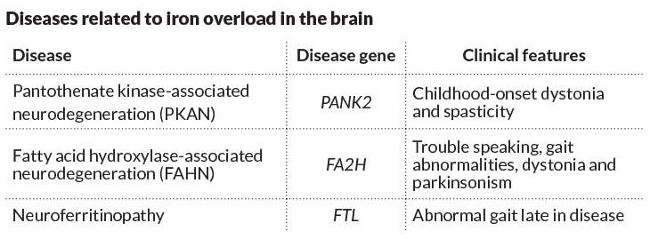 These three genetic diseases belong to a small group of disorders marked by excess iron in the brain. Rare cases like these may help clarify iron’s role in other disorders, such as Parkinson’s.