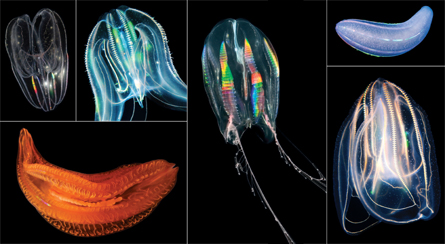 Start with their appearance: The marine animals resemble translucent balloons rigged with flashing, colored lights. Some species glow. When startled, some flash electric blue. Vertical rows, or combs, made of hundreds of iridescent, hairlike cilia run the lengths of their globular bodies (thus the name comb jellies). In some species the cilia are 2 millimeters long — 200 times the length of cilia in other animals — and they beat in coordinated waves, propelling the jellies forward, backward and diagonally in search of prey.