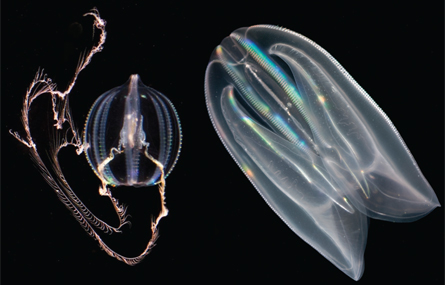 More support for the dramatic repositioning of the comb jelly emerged at the San Francisco meeting, where in addition to Baxevanis’ talk there were 13 other presentations and posters related to the jelly genomes. Most important were new data from the group led by Moroz, which had just finished analyzing the genome of the gooseberry comb jelly — P. bachei,a symmetrical beauty with eight combs of iridescent cilia and two long sticky tentacles. In his team’s new tree of animal evolution, comb jellies also diverge at the bottommost branch, below the sponges.