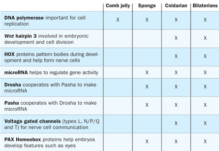Baxevanis says the simplest explanation for the missing genes is that they evolved after comb jellies branched off from the ancestors of other animals, arguing for an earlier spot on the tree for the jellies.