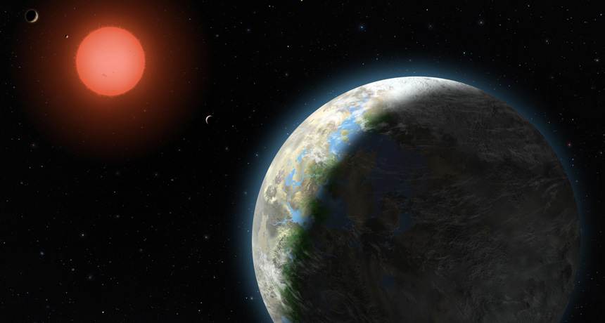Located about 20 light-years away in the constellation Libra, Gliese 581 is a small, dim star similar to tens of billions of other stars in the galaxy. Yet it has grabbed astronomers’ attention due to claims that two very intriguing planets orbit it. Gliese 581d, discovered in 2007, was the first reported exoplanet on which life seemed plausible (SN: 5/23/09, p. 11). Then in 2010, Gliese 581g grabbed headlines when codiscoverer Steven Vogt of the University of California, Santa Cruz said, “The chances of life on this planet are 100 percent” (SN: 10/23/10, p. 5).