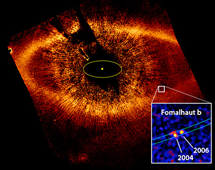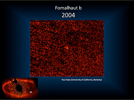 In a separate report, Paul Kalas of the University of California, Berkeley and his colleagues unveil what appears to be another historic extrasolar planet image. Using the Hubble Space Telescope, Kalas and his collaborators have captured a portrait of a body orbiting the well-known massive star Fomalhaut, which is only 25 light-years from Earth.
