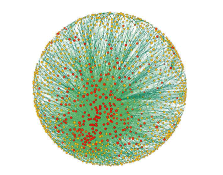 POWER BALL A central core of extremely powerful actors (red dots) dominates international corporate finance, a new mathematical analysis finds.