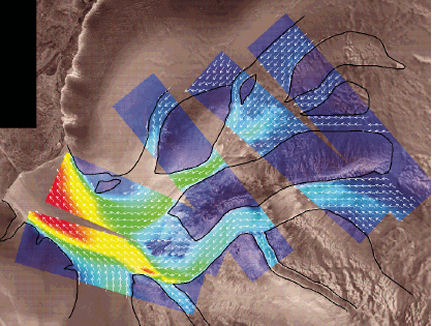 Gudmundsson used global positioning system (GPS) equipment to measure the rate of ice flow at several points on the Rutford Ice Stream every 5 minutes between late December 2003 and mid-February 2004. On average, the ice in that stream slides seaward about 1 meter each day, he found.