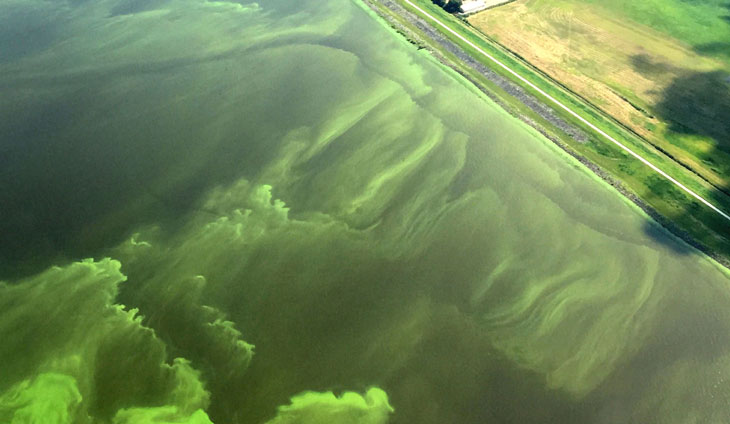 Agriculture is big business in Florida; the state’s exports total more than $4 billion each year. But fertilizer from the agricultural regions pollutes waterways feeding into Lake Okeechobee, causing algal blooms in the lake. Regulated discharges from the lake to control flooding shunt polluted water to the east, west and south, causing periodic algal blooms on the coasts and in Florida Bay.