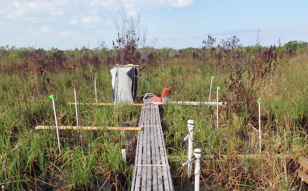 That expanse is an intentional deterrent, says Benjamin Wilson, a wetland ecologist at Florida International University. This boardwalk isn’t meant for visitors; it’s for scientists, who built it as part of a long-term research study to try to understand what, exactly, causes peat soil collapse.