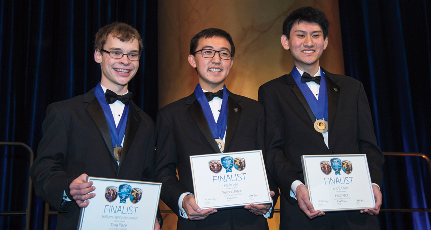 Intel STS 2014 winners (left to right) William Kuszmaul, Kevin Lee and Eric Chen.