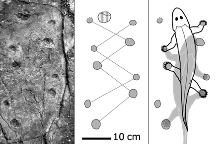 Fossilized footprints found in an abandoned quarry in Poland hint that four-limbed creatures called tetrapods evolved much earlier and in a radically different environment than previously thought.