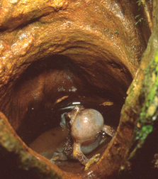 DEEP VOICE. A male tree-hole frog in Borneo advertises for a companion. Lardner