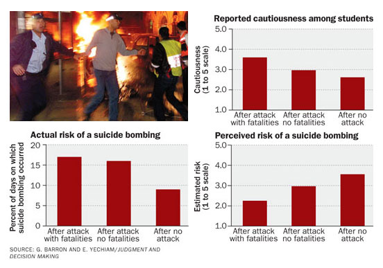GAMBLING ON EXPERIENCE Scientists are showing that experience may shape behavior and decisions about risks in previously underappreciated ways. Sarah Jane ColemanCOEXISTING CONCEPTS In fall 2000, a period of Palestinian suicide bombing in Israel began (car explosion in 2001 shown).