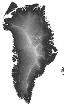 LOSING WEIGHT. In 2005, the Greenland ice sheet, shown here in a new, satellite-generated topographical map, lost ice about twice as fast as it had in previous years.
