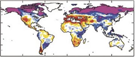PARCHED OR SOAKED. Multiple climate models agree that regions shown in red and yellow will become drier by 2050.