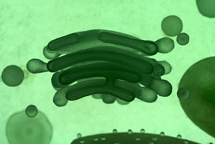 The function of the Golgi apparatus is well known, but its odd shape has long been a mystery. Researchers have described it as a stack of pancakes or a pile of deflated balloons. The pancakes are membranes that enclose empty space that proteins travel through.